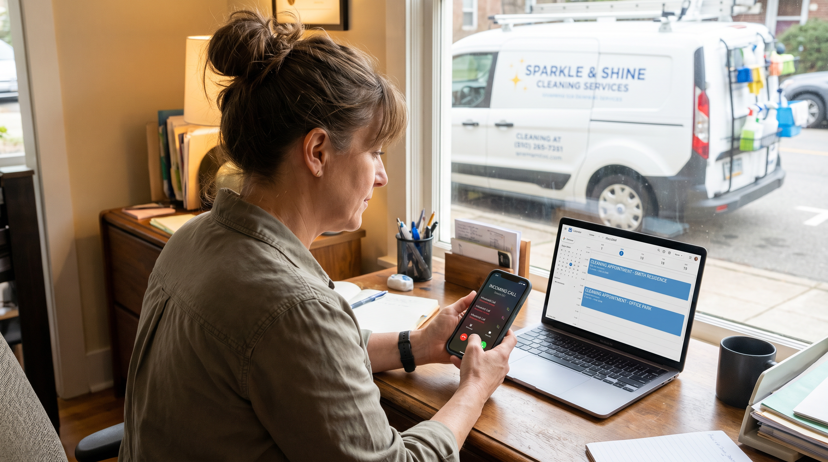 It's 8:30 AM on a Tuesday. Your cleaning crews are dispatching to their first jobs, you're trying to finalize the week's schedule, and your phone starts ringing. It's a potential new client asking for a deep clean quote. Before you can finish that conversation, another call comes in—an existing client needing to reschedule Thursday's appointment.