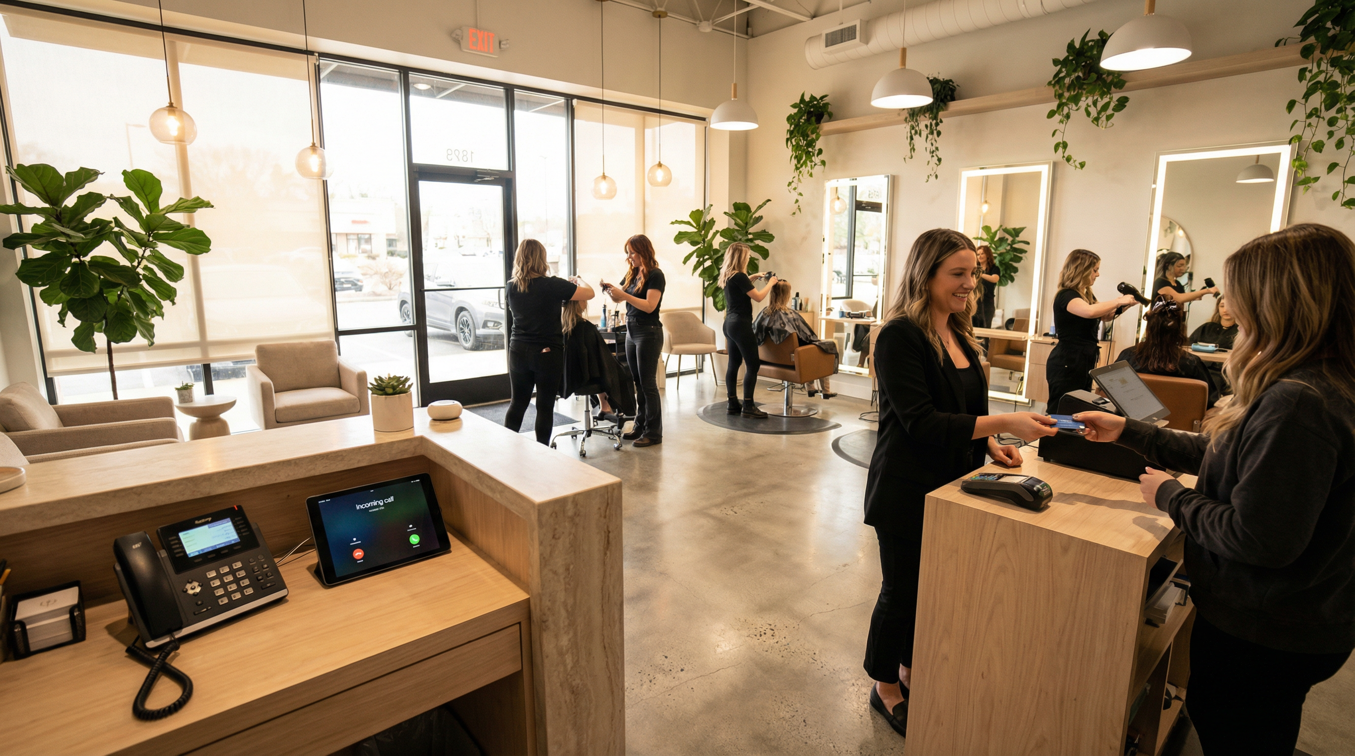 It’s a busy Saturday morning at the salon. Every chair is full, the blow dryers are humming, and the phone starts ringing. The receptionist is currently checking out a client who just finished a balayage, and another stylist is asking a question about a formula. The phone rings four times, then goes to voicemail.